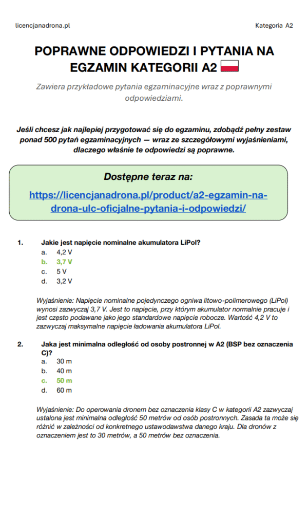 A2 Egzamin na drona ULC | Oficjalne Pytania i Odpowiedzi 2025 w Polsce