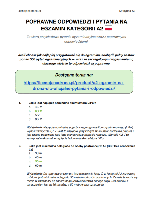 A2 Egzamin na drona ULC | Oficjalne Pytania i Odpowiedzi 2025 w Polsce